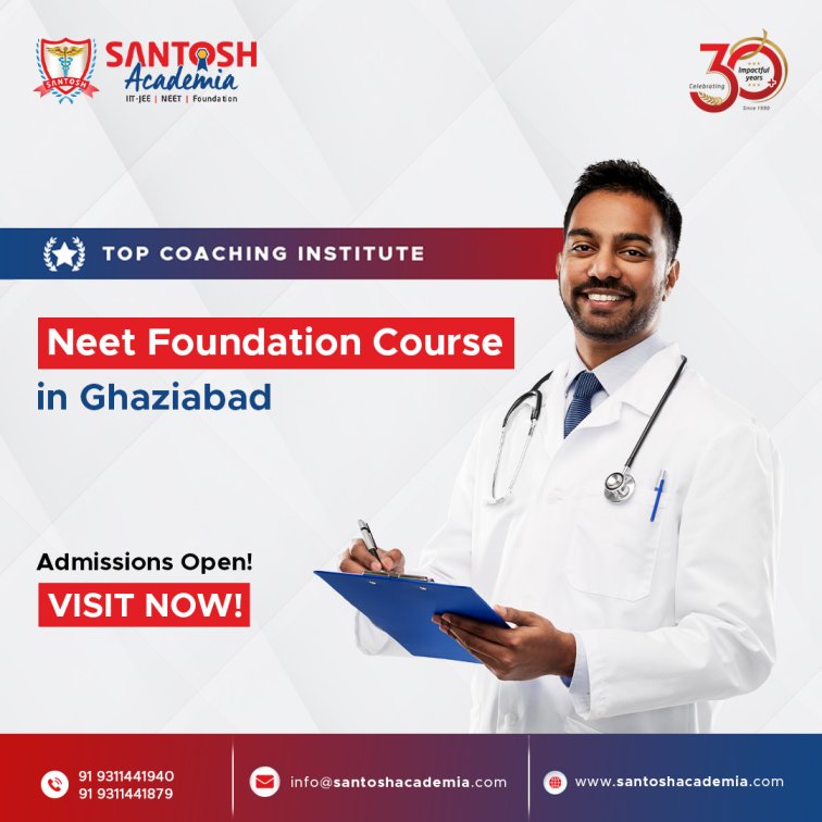 NEET Foundation course in Ghaziabad by Santosh Institute is designed for students beginning their medical career journey. The program builds strong fundamentals in science subjects while improving analytical thinking skills. Regular tests, interactive classes, and personal mentoring support steady academic development. Santosh Institute helps students gain early confidence and prepares them for advanced NEET-level studies in future classes.