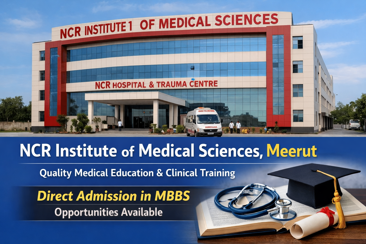 NCR Institute of Medical Sciences, Meerut has become one of the emerging private medical colleges in Uttar Pradesh for students who want to build a strong career in the field of medicine. The institute is known for its modern infrastructure, experienced faculty, and a well-equipped teaching hospital that provides valuable clinical exposure to students. Located in Meerut, the college offers a suitable academic environment for aspiring doctors who want quality medical education along with practical training.