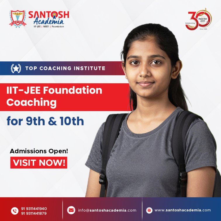 Santosh Academia offers expert IIT-JEE Foundation Coaching for 9th & 10th students, designed to build strong fundamentals for future engineering aspirants. With experienced faculty, structured study materials, and personalized guidance, we focus on conceptual clarity, problem-solving skills, and analytical thinking. Regular tests and doubt-clearing sessions ensure consistent progress and confidence. Choose us for a solid foundation, effective preparation, and a clear pathway to success in IIT-JEE.